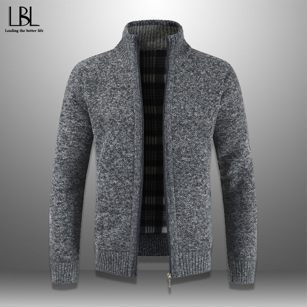Mens Cardigan Autumn Winter Warm Thick Sweater Casual Knitwear Wind Breaker Jacket Stand Collar Overcoat Men Zipper Knitted Coat